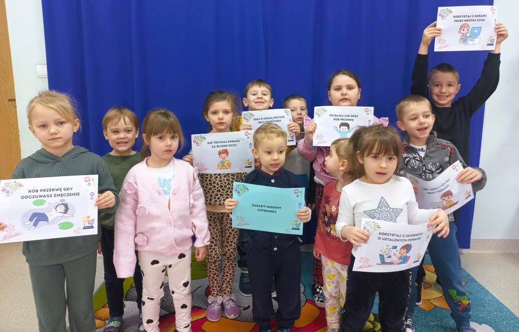 W naszym przedszkolu obchodziliśmy Dzień Bezpiecznego Internetu,którego celem jest kształtowanie u dzieci bezpiecznych i odpowiedzialnych nawyków związanych z korzystaniem z urządzeń cyfrowych.Podczas zajęć dzieci rozmawiały o tym,czym jest Internet,do czego może służyć oraz jak korzystać z niego mądrze i bezpiecznie.Nie zabrakło również rozmowy na temat higieny cyfrowej.Przedszkolaki dowiedziały się,że należy robić przerwy od ekranu,dbać o wzrok oraz zachowywać równowagę pomiędzy czasem spędzanym online a zabawą i aktywnością ruchową.Na koniec zajęć każde z nich narysowało,w jaki sposób może naładować swoje wewnętrzne baterie oczywiście po odłączeniu się od Internetu i urządzeń elektronicznych.Mamy nadzieję,że dzisiejsze rozmowy na długo pozostaną w pamięci dzieci i będą miały pozytywny wpływ na codzienne wybory.