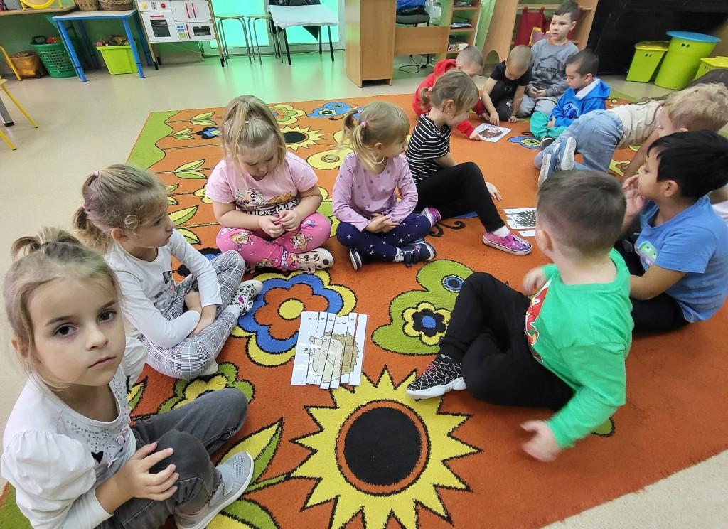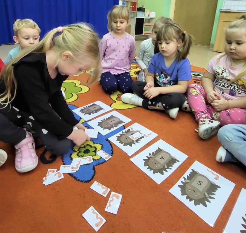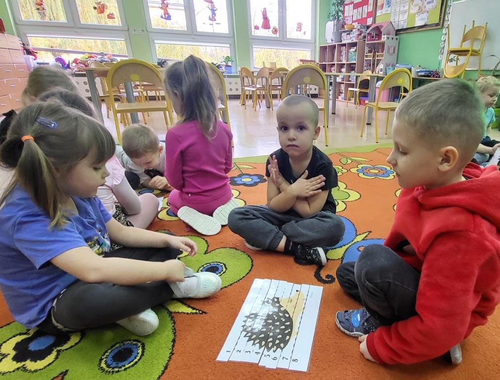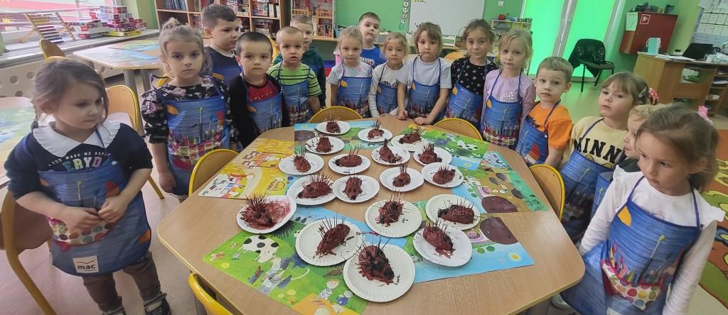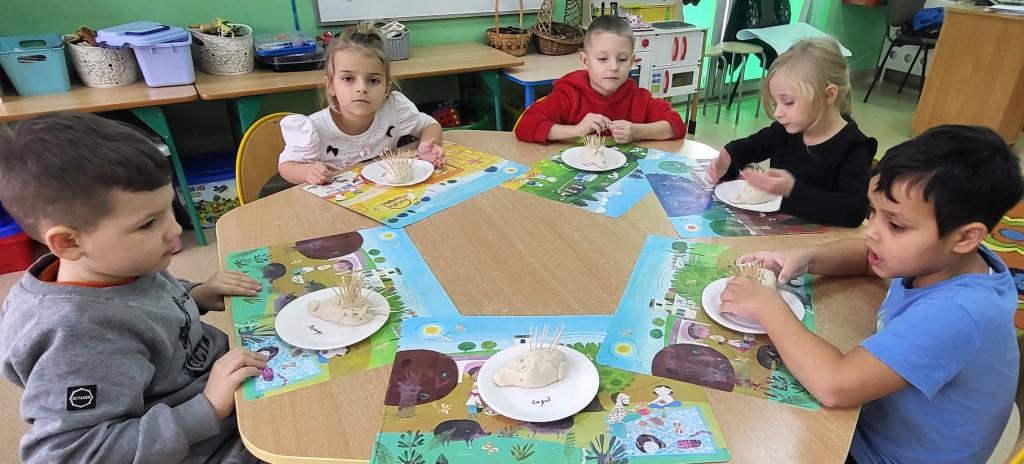 12 listopada dzieci z grupy Żabki obchodziły Dzień Jeża.Tego dnia Przedszkolaki miały okazję poszerzyć wiadomości dotyczące środowiska naturalnego jeży,ich wyglądu,sposobu poruszania się,odżywiania oraz w jaki sposób przygotowują się do zimy oraz dowiedziały się,że jeże są pod ochroną.Dzieci wysłuchały opowiadania pt.Tajemnice jeża Kolczusia,rozwiązywały zagadki,uczestniczyły w zabawach ruchowych- Jeżyk,grały w Jeżowe memory,karmiły jeże i przeliczały liście oraz przysmaki jeży.Na koniec Żabki wykonały jeża wylepiając mu kolce ze słonecznika.Przedszkolaki oglądały książeczki,wesoło bawiły się i tańczyły przy muzyce i piosenkach o jeżach.Była zabawa pt.Na dywanie siedzi jeż,Jeżyk i chusta animacyjna.Nie zabrakło zabaw matematycznych, podczas których dzieci przeliczały i karmiły jeże stosując liczebniki główne i porządkowe,dobierały jeże do pary,układały puzzle.Motylki lepiły jeże z masy solnej a po jej wyschnięciu malowały farbami.Ten dzień przyniósł dzieciakom wiele radości.