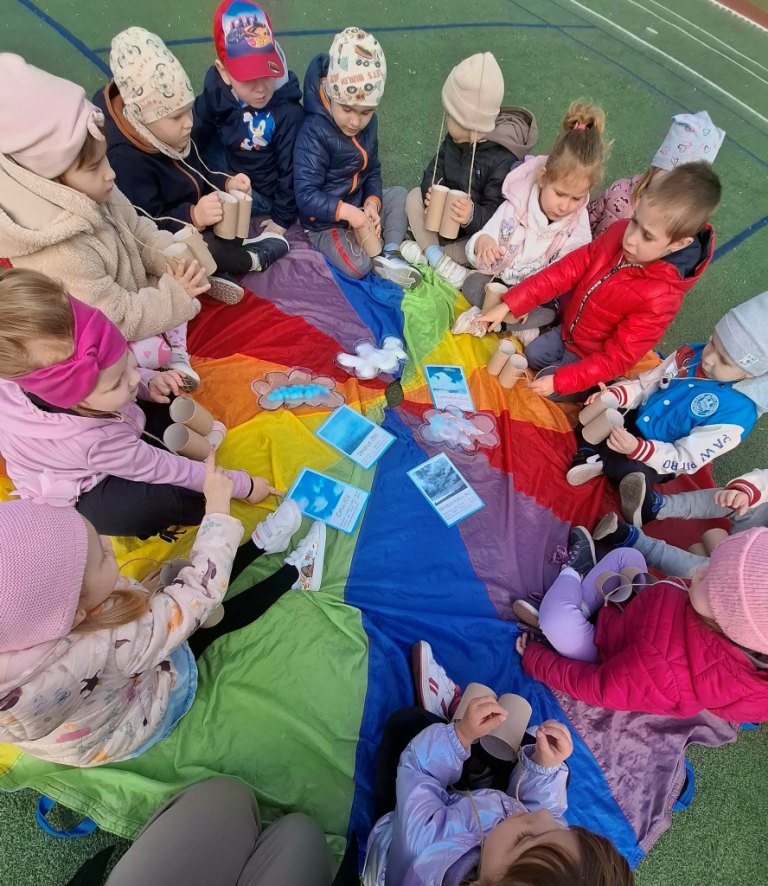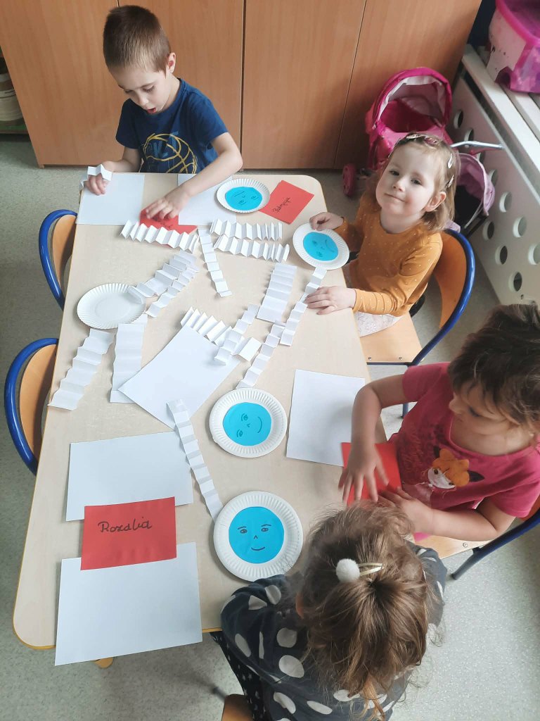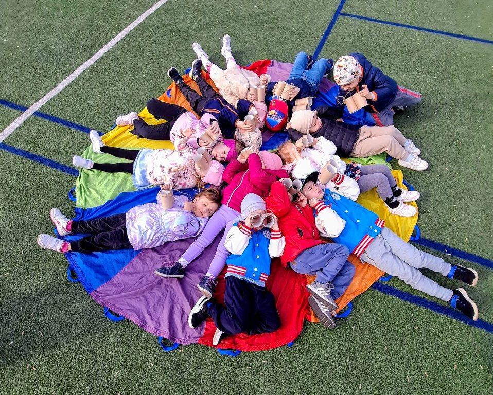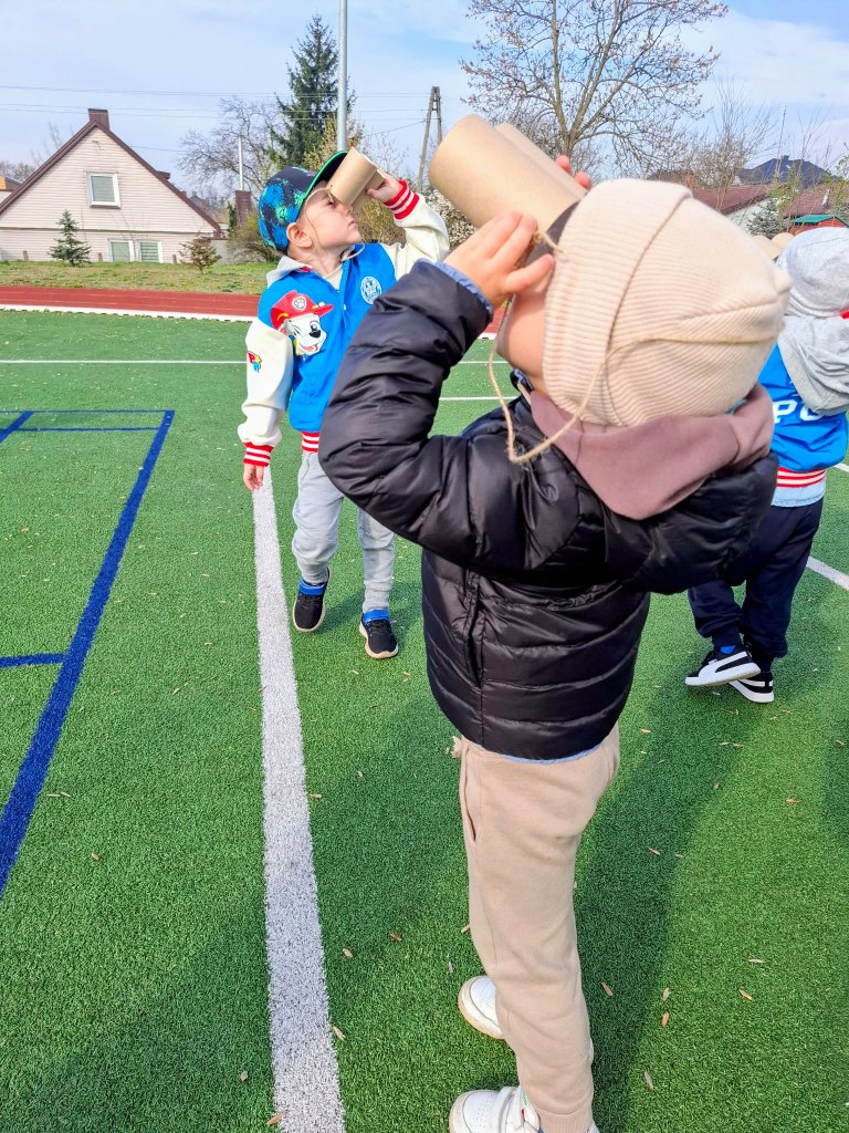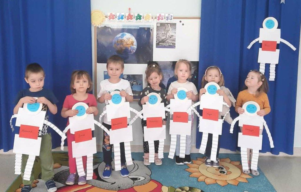16 kwietnia przedszkolaki z grupy Rybki obchodziły Dzień Patrzenia w Niebo.Tego dnia dzieci miały okazję spojrzeć w górę i przyjrzeć się bliżej temu,co na co dzień bywa niedostrzegane.Mali odkrywcy z zainteresowaniem obserwowali niebo,korzystając z papierowych lornetek.Dzięki nim mogli dokładnie przyjrzeć się chmurom,ich kształtom oraz rodzajom.W trakcie zajęć rozmawiali również o pogodzie i o tym jak potrafi się ona zmieniać.Nie zabrakło zabaw ruchowych–dzieci ćwiczyły z miękkimi pomponami przypominającymi chmurki,a także uczestniczyły w zajęciach sensorycznych z wykorzystaniem puszystej piany.Popołudnie przeniosło nas jeszcze wyżej–ponad chmury,aż w przestrzeń kosmiczną.Przedszkolaki rozmawiały o tym,co znajduje się w kosmosie,kim są astronauci i jak wygląda ich praca.Wyruszyły w wyobrażoną kosmiczną podróż z elementami jogi,pełną fascynujących odkryć i marzeń o gwiazdach,oraz wykonały pracę plastyczną„Jestem astronautą”.To był dzień pełen inspiracji,który zachęcił dzieci do obserwowania świata i rozwijania swojej ciekawości.