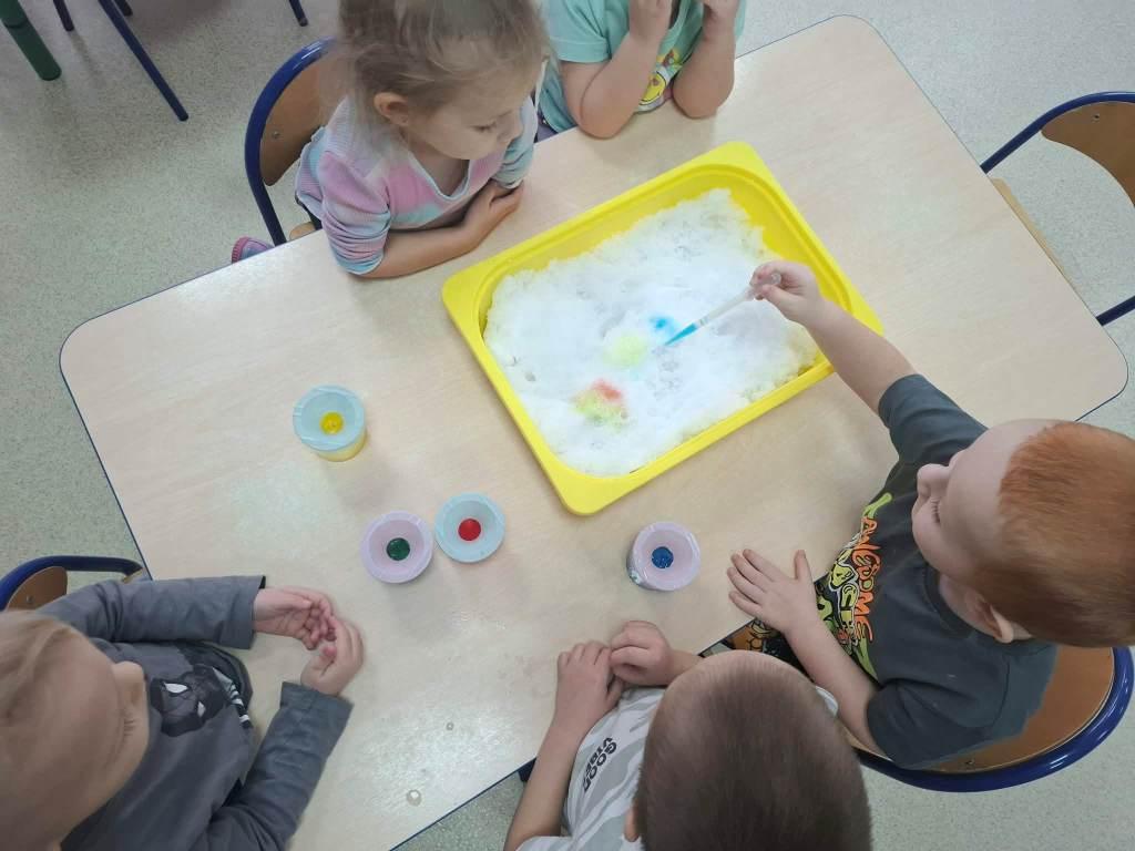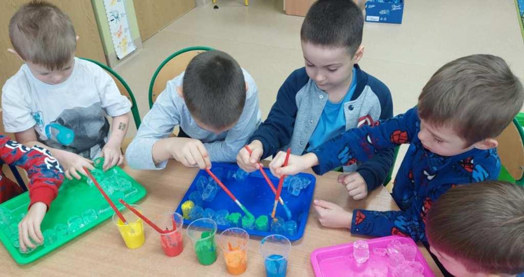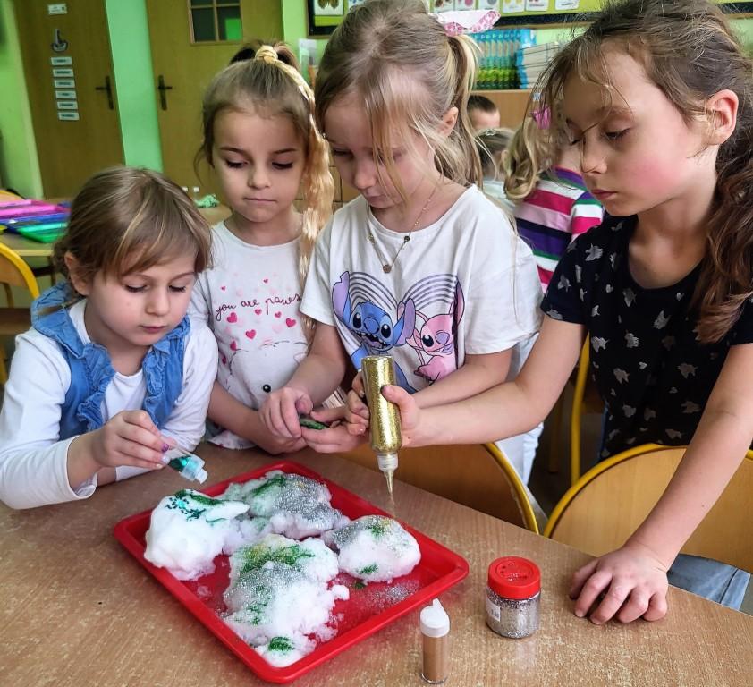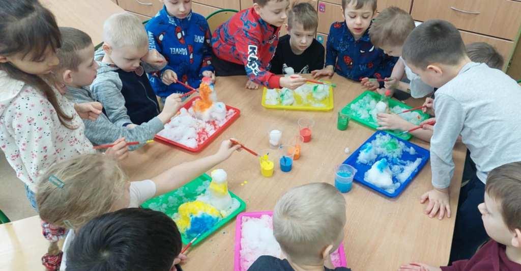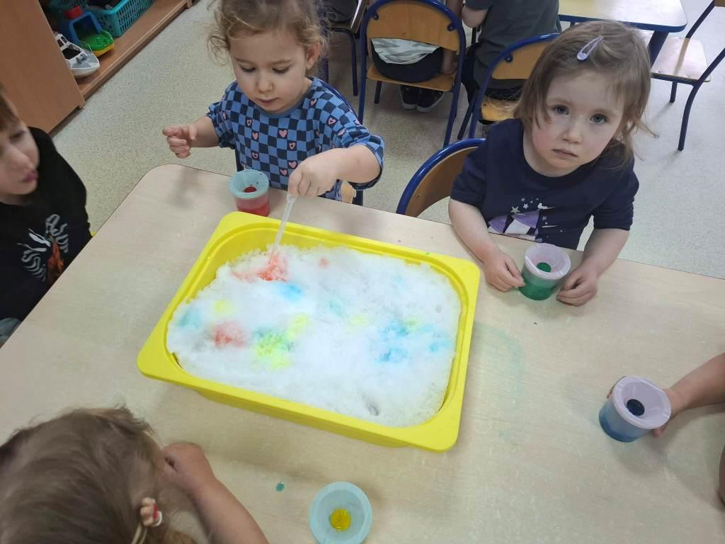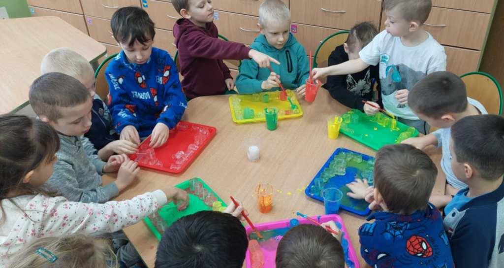 W naszym przedszkolu odbył się Dzień Śniegu,podczas którego dzieci z poszczególnych grup uczestniczyły w różnorodnych aktywnościach dostosowanych do ich wieku.Przedszkolaki poznawały właściwości śniegu i lodu–obserwowały jego wygląd,temperaturę oraz zmiany pod wpływem ciepła.Brały udział w zabawach badawczych,tworzyły sztuczny śnieg,a także eksperymentowały z lodem,sprawdzając,jak topnieje i zmienia swoją postać.Nie zabrakło również zimowych zabaw ruchowych oraz innych działań inspirowanych zimą.Dzień ten był pełen radości,ciekawych doświadczeń i rozwijania dziecięcej ciekawości świata.