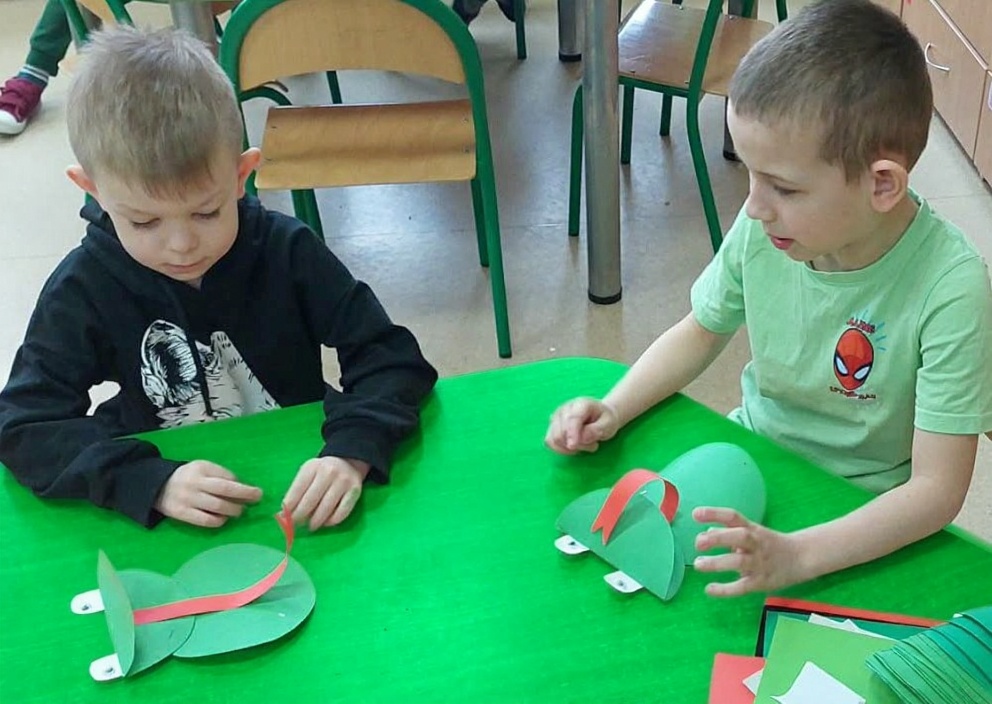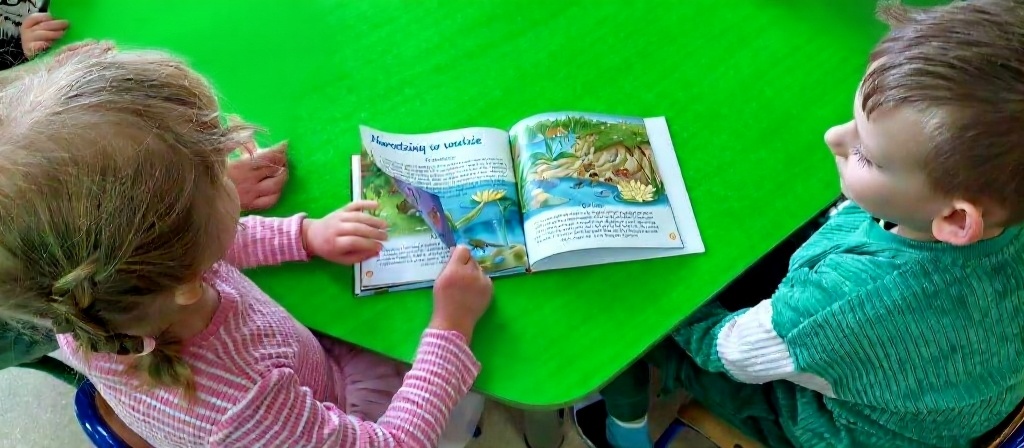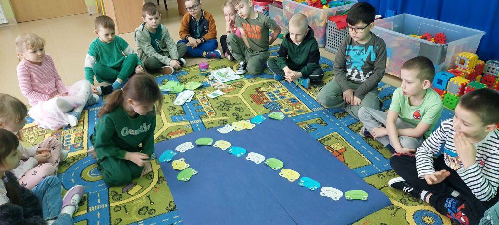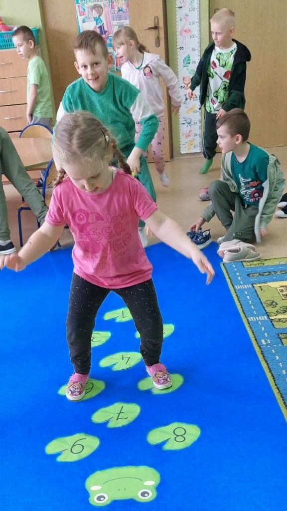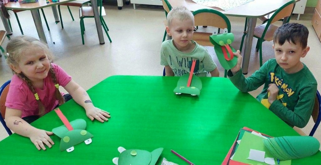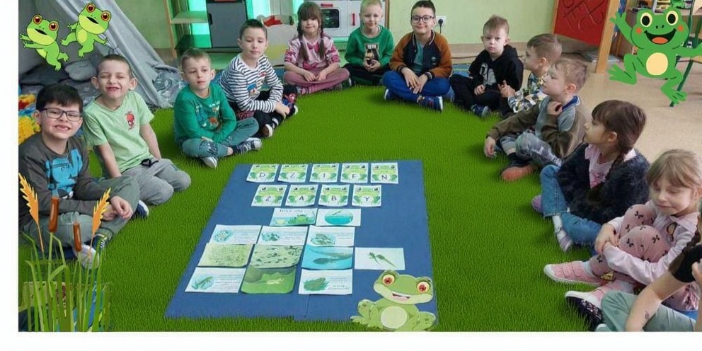 Dnia 20 marca przedszkolaki z grupy Żabki włączyły się w obchody Światowego Dnia Żaby.Tego dnia,dzieci obejrzały obrazki przedstawiające cykl rozwojowy żab,dzięki którym dowiedziały się skąd się biorą te płazy,wysłuchały opowiadanie B.Formy„Zielona żabka”,poznały znaczenie barwy ochronnej.Rozwiązywały zagadki,przeliczały,układały rytmy, kodowały,poszukiwały ciekawostek o żabkach w książeczkach.Na koniec wykonały prace plastyczną.
