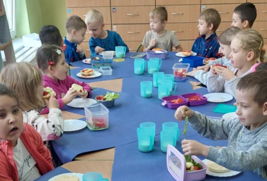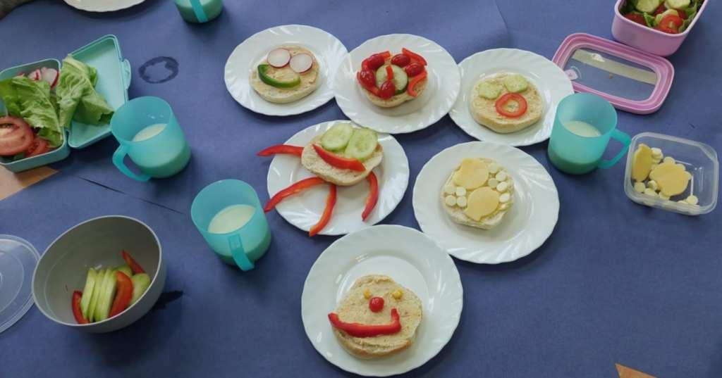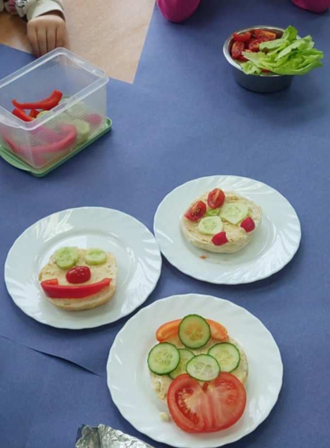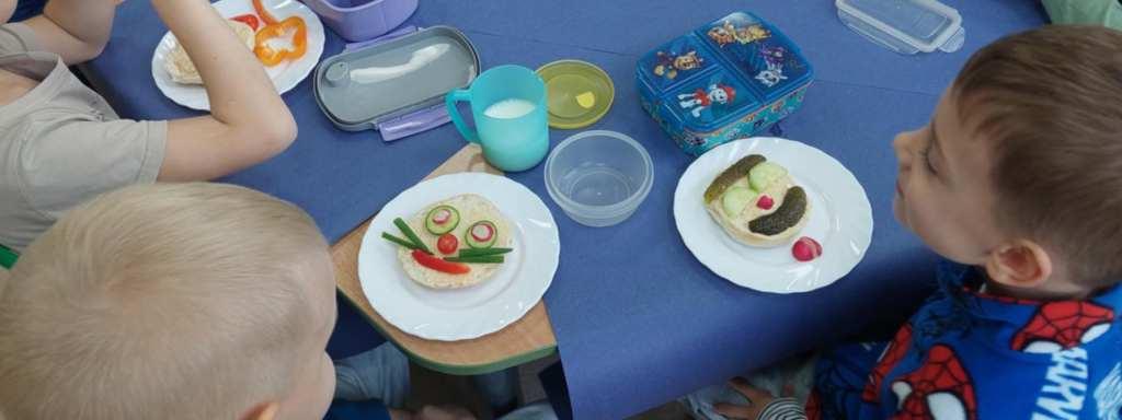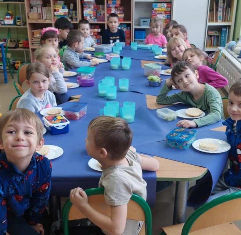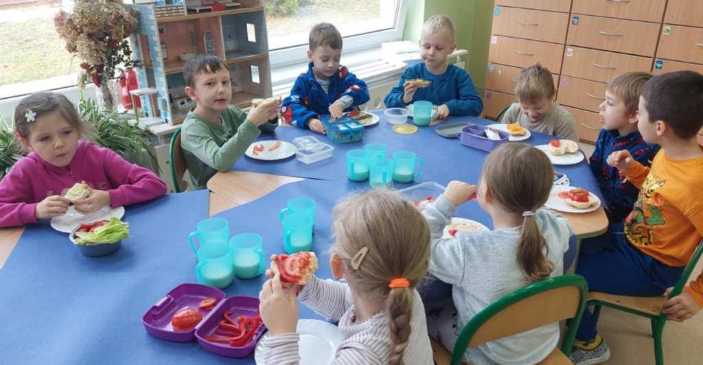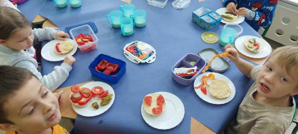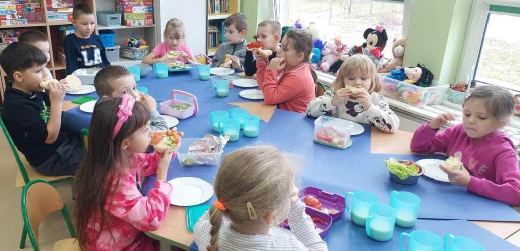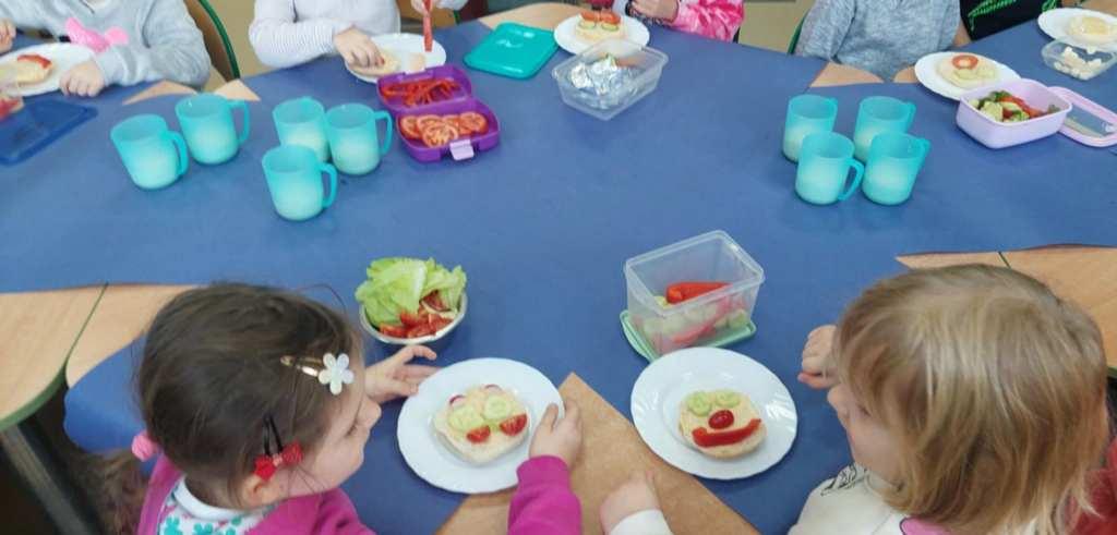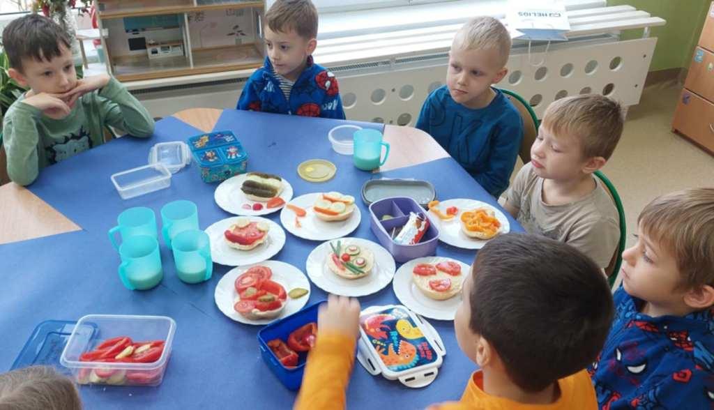 7 listopada wszystkie dzieci z naszego przedszkola obchodziły Dzień zdrowego śniadania.Tego dnia zebrały się wokół pięknie nakrytego,kolorowego stołu,na którym znajdowały się produkty,z których składało się nasze zdrowe śniadanie.Każdy przedszkolak mógł samodzielnie skomponować swój posiłek z ulubionych składników.Dzieci samodzielnie komponowały pyszne i zdrowe kanapki o oryginalnym wyglądzie,a następnie zjadały je z wielkim apetytem.Podczas robienia kanapek kształciły odpowiednie nawyki żywieniowe,rozwijały kreatywność,wyobraźnię oraz pamiętały o higienie.Okazało się,że przedszkolaki lubią warzywa,a najlepiej smakują im kanapki zrobione własnoręcznie,które wyglądały pięknie,kolorowo i zawierały mnóstwo witamin.Dzień Zdrowego Śniadania był także doskonałą okazją do utrwalenia wiadomości o zdrowym odżywianiu,poznawania nowych smaków i czerpania radości ze wspólnego spożywania posiłku.