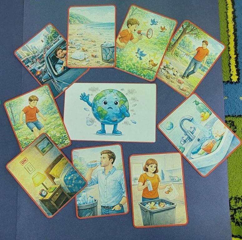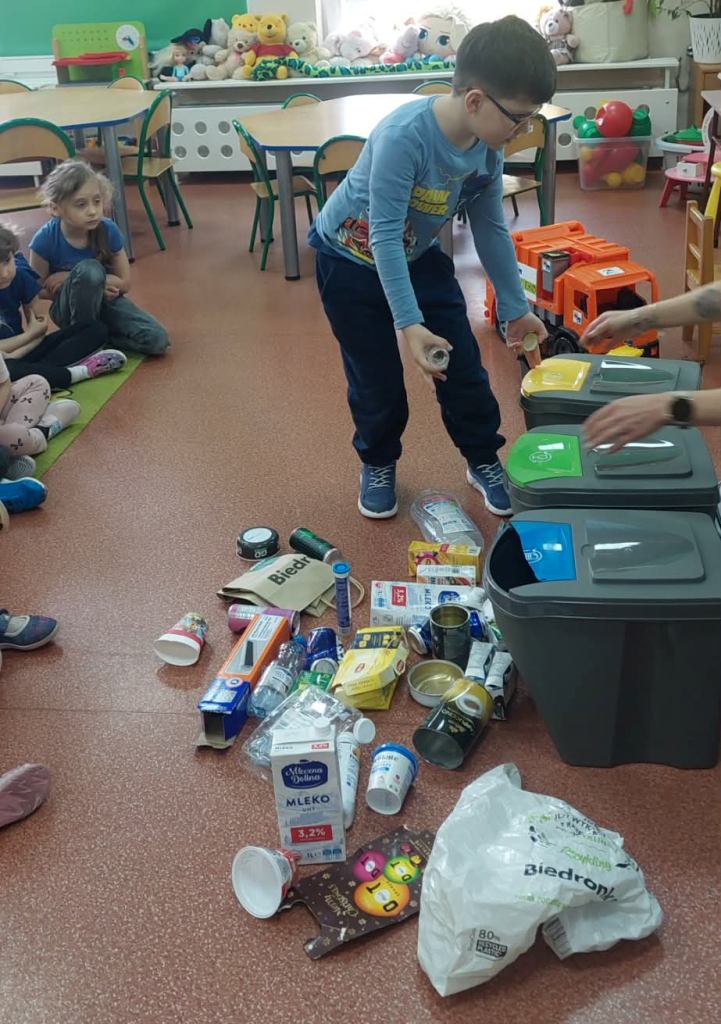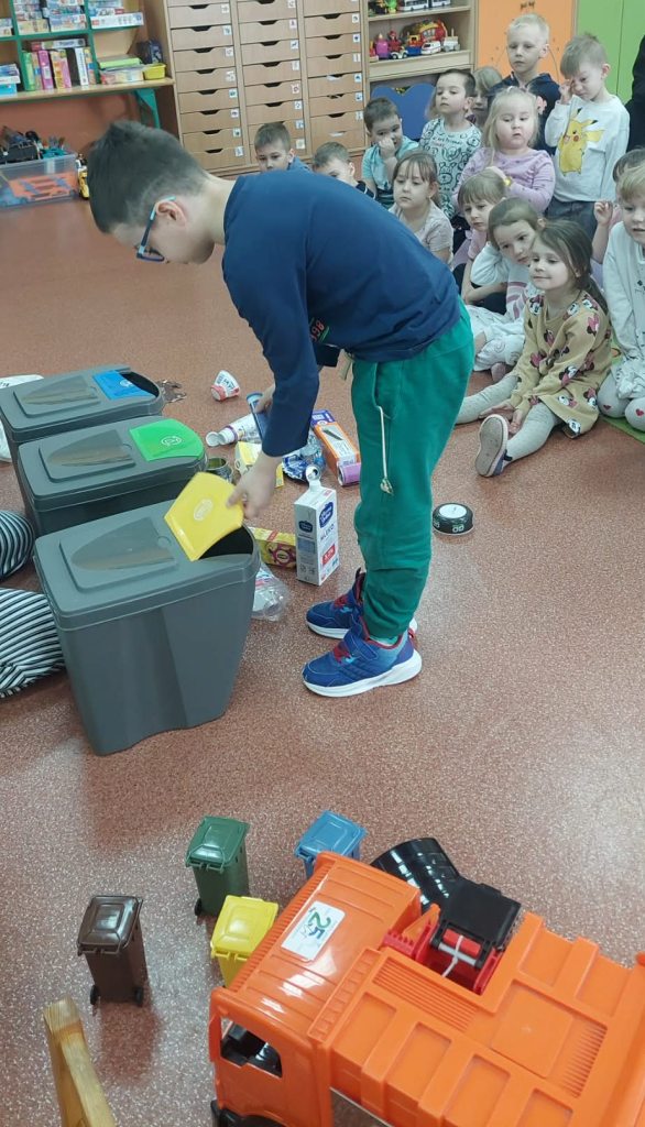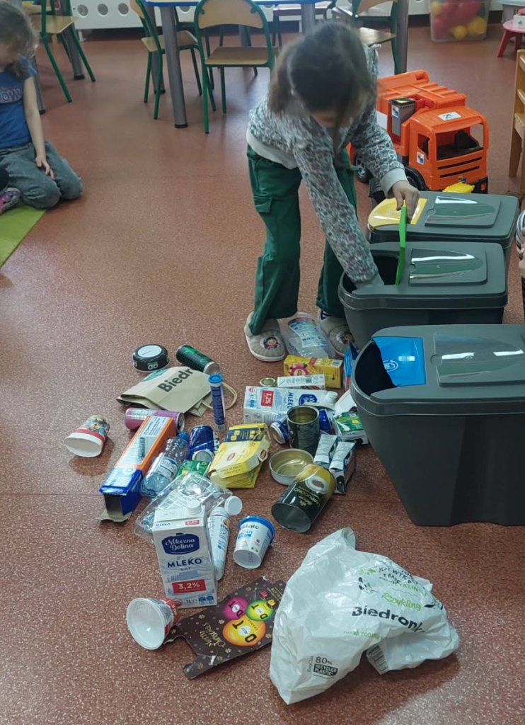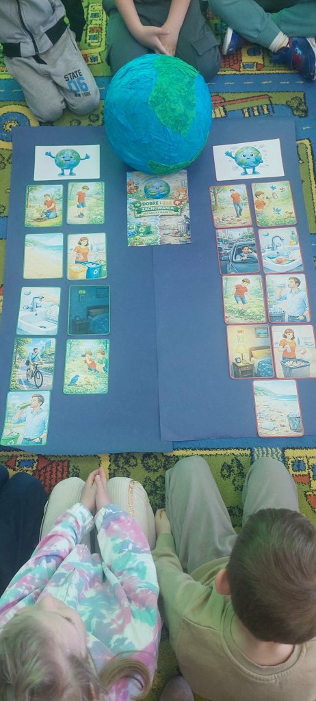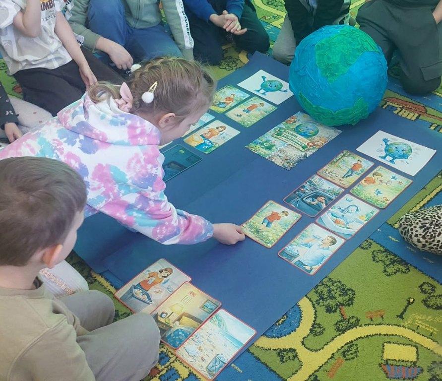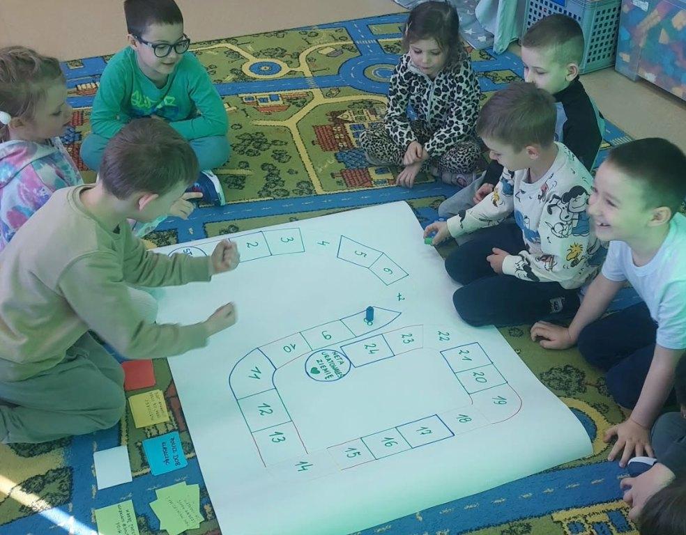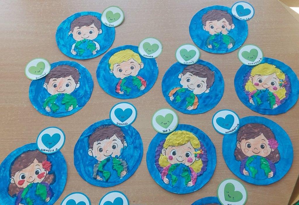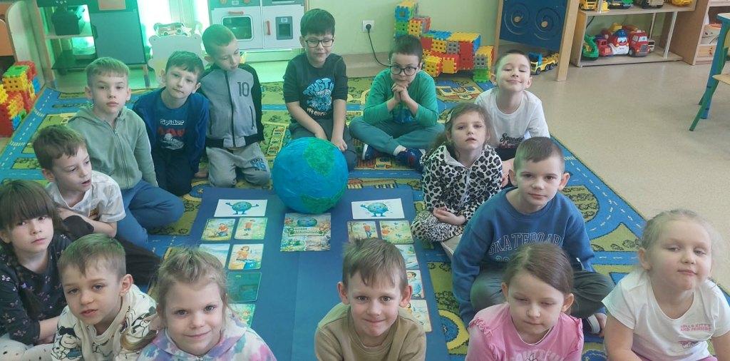 17 kwietnia grupa Żabki zrealizowała kolejny temat z projektu interdyscyplinarnego pt.”Dzień Ziemi z matematyką”.Światowy Dzień Ziemi to największe i najbardziej popularne święto ekologiczne na świecie,którego celem jest promowanie proekologicznych postaw w społeczeństwie oraz budowanie wspólnej odpowiedzialności za naszą planetę.Podczas zajęć dzieci dowiedziały się jak dbać o Ziemię i dlaczego jest to takie ważne.Poznały dobre i złe zachowania,obejrzały film edukacyjny dotyczący segregacji śmieci,dzięki któremu wiedzą jak należy segregować śmieci.Przeliczały,układały Eko-rytmy,układały planetę z figur geometrycznych oraz stworzyły grę planszową„Ratujmy naszą Ziemię”.Na koniec wykonały pracę plastyczną i złożyły przysięgę, że będą dbały o Ziemię każdego dnia.