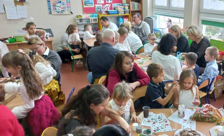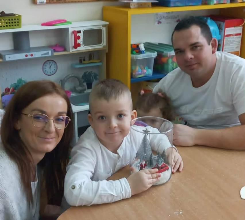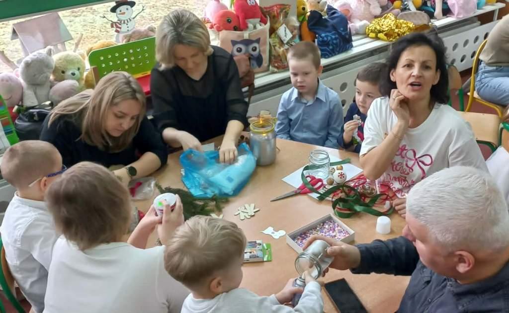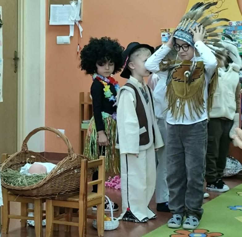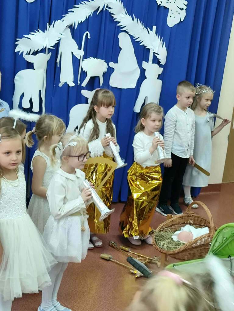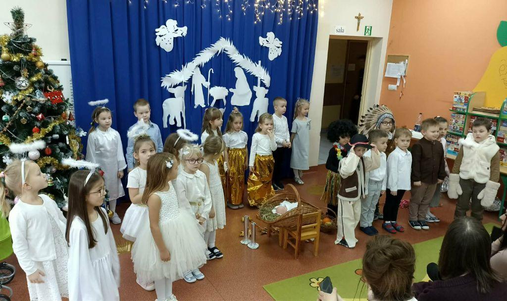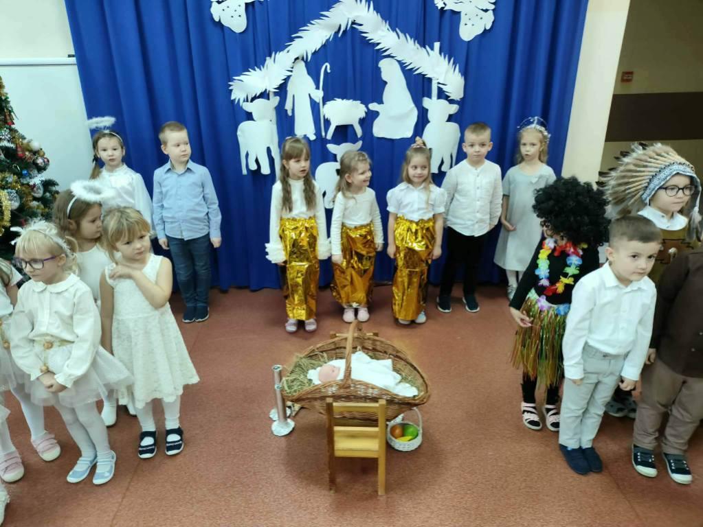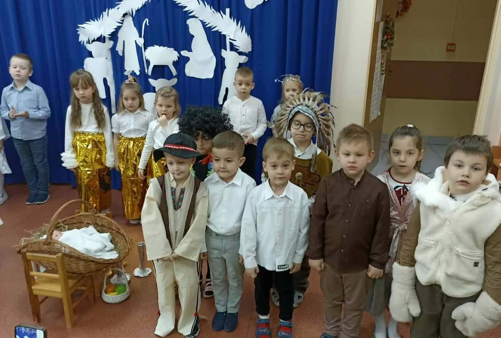 W dniu 17 grudnia odbyły się jasełka bożonarodzeniowe przygotowane przez dzieci z grupy Wiewiórki.Dzieci zaprezentowały program artystyczny nawiązujący do narodzin Jezusa,w który wplecione były wiersze,kolędy oraz pastorałki.Mali artyści z dużym zaangażowaniem wcielili się w swoje role,a występ został nagrodzony gromkimi brawami przez licznie zgromadzonych rodziców.Gościem specjalnym na naszej uroczystości był oczywiście Święty Mikołaj,który przywędrował z ogromnym workiem prezentów.Jasełka wprowadziły wszystkich w radosny,świąteczny nastrój oraz były okazją do wspólnego przeżywania wyjątkowego czasu.Po części artystycznej odbyły się warsztaty świąteczne,podczas których dzieci wspólnie z rodzicami wykonywały lampiony bożonarodzeniowe.Warsztaty sprzyjały rozwijaniu kreatywności,współpracy oraz wzmacnianiu więzi rodzinnych.Wydarzenie przebiegło w miłej,serdecznej atmosferze i dostarczyło wszystkim uczestnikom wielu pozytywnych emocji.Był to wartościowy czas wspólnego świętowania.Bardzo dziękujemy wszystkim rodzicom za obecność i za zaangażowanie.