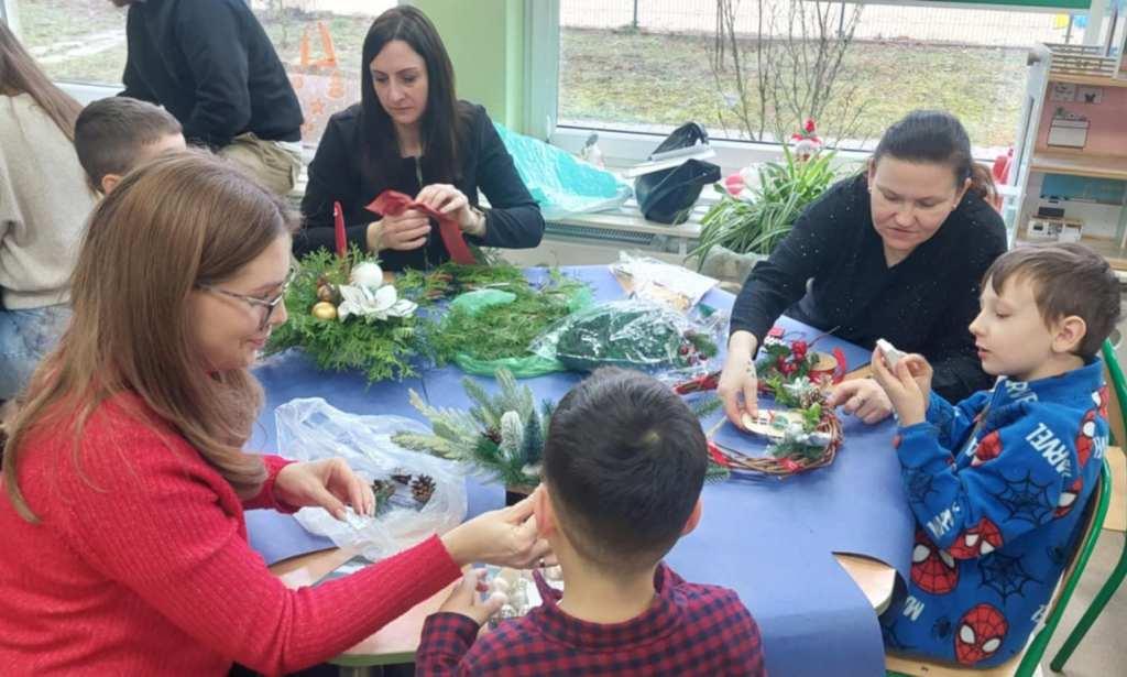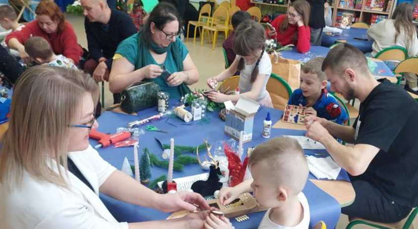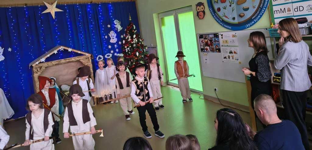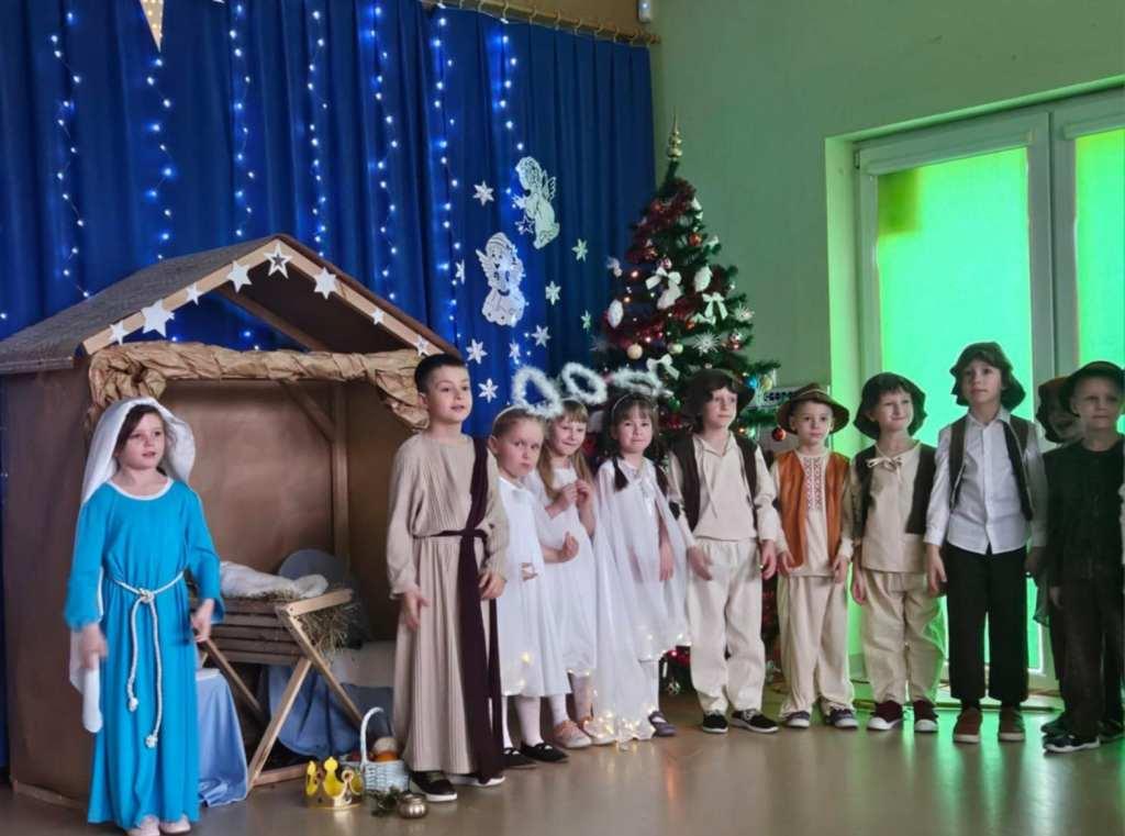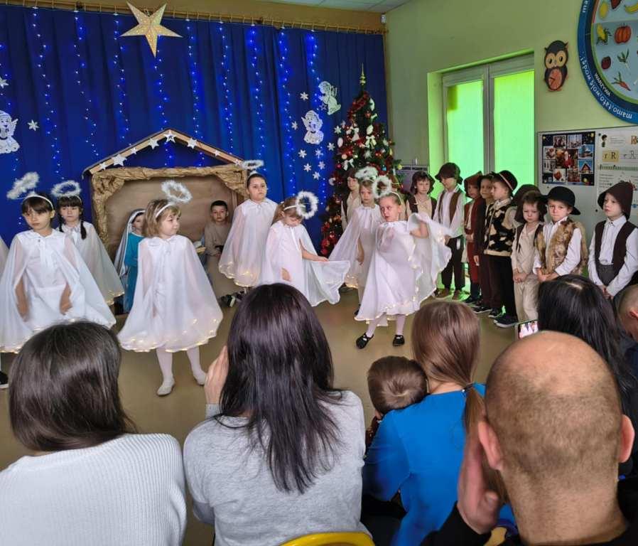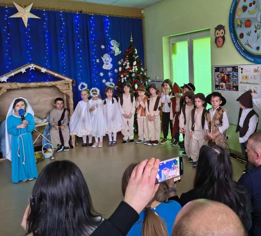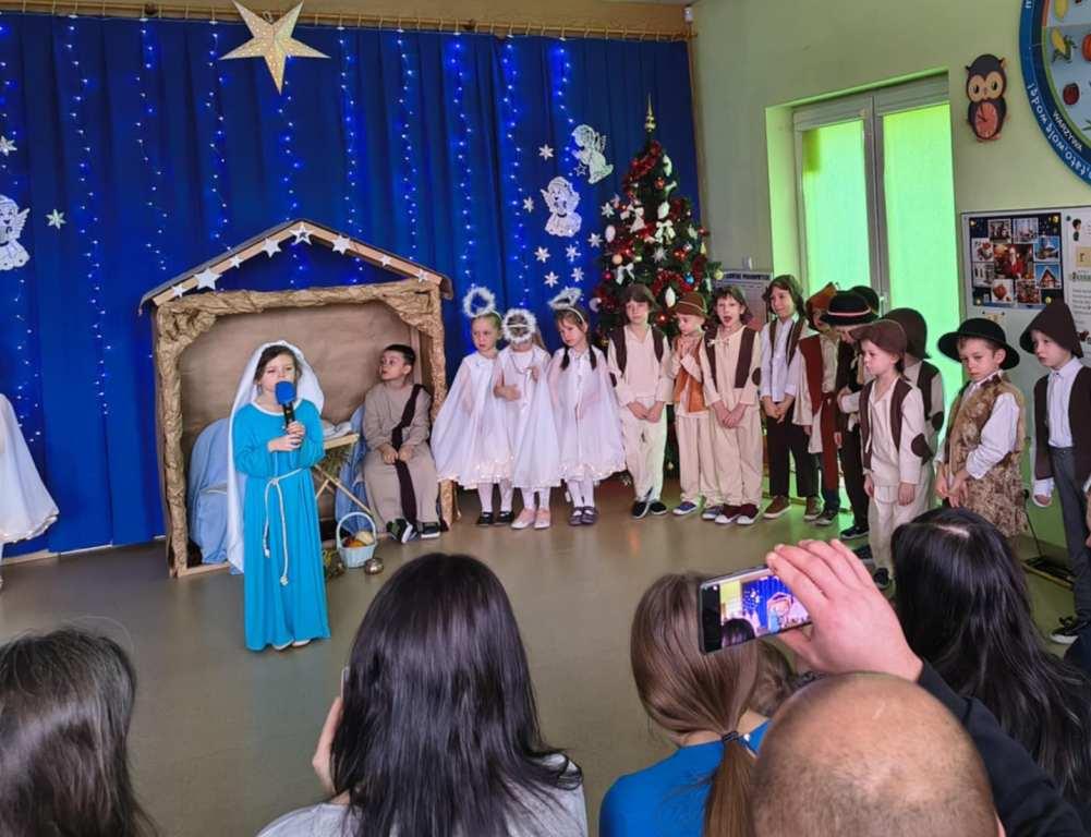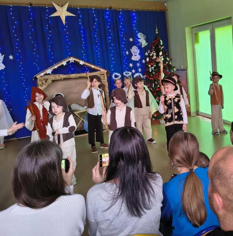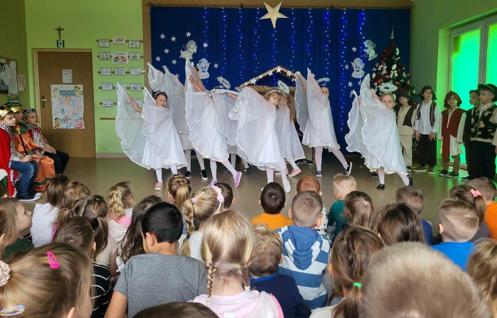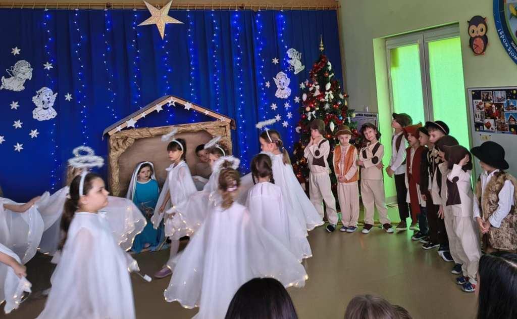 Okres świąt Bożego Narodzenia to czas pełen radości,piękna i refleksji.Czas spełniania marzeń i okazywania sobie wzajemnej miłości,a przede wszystkim spotkań w gronie najbliższych.Aby podkreślić wyjątkowy charakter tych świąt,Żabki przygotowały przedstawienie jasełkowe,które wprowadziło wszystkich zaproszonych Gości w ten piękny nastrój.Dzieci w specjalnie przygotowanych przez Rodziców strojach oraz w scenografii nawiązującej do Betlejem przedstawiły sceny narodzin Jezusa Chrystusa.Przedszkolaki z dużym przejęciem i zaangażowaniem wiernie odtwarzały swoje role,prezentowały umiejętności recytatorskie i wokalne oraz taneczne.Takie podniosłe chwile nie tylko utrwalają dzieciom znajomość tradycji i zwyczajów świątecznych,lecz wzmacniają serdeczne relacje między nimi.Po występie odbyły się warsztaty wspólnego robienia stroików świątecznych.To był magiczny czas.Życzymy Wszystkim Wesołych Świąt.