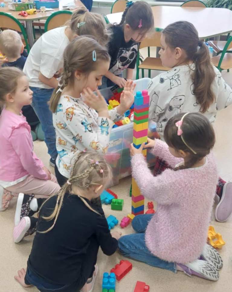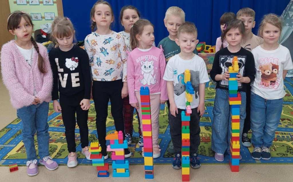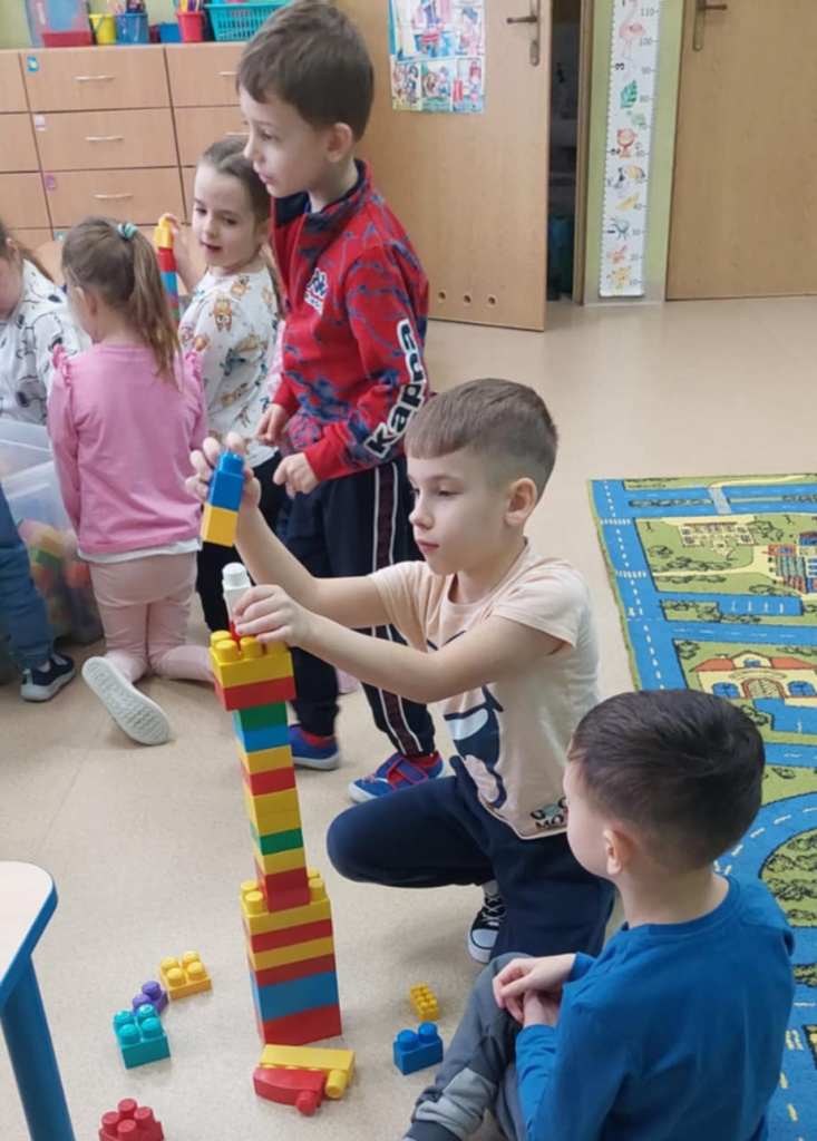 28 stycznia grupa Żabki i Motylki obchodziła Międzynarodowy Dzień Klocków Lego.To wyjątkowa okazja do rozwijania kreatywności i współpracy wśród dzieci.Na początku zajęć przedszkolaki poznały historię klocków Lego i oglądały inspirujące budowle.Następnie przeliczały klocki,układały rytmy a także budowały w grupach wieże i inne budowle rozwijając zdolności manualne,wyobraźnię i umiejętność pracy w zespole.Zabawa była wspaniała,dostarczała wiele radości zarówno indywidualnie jak i w małych grupach.