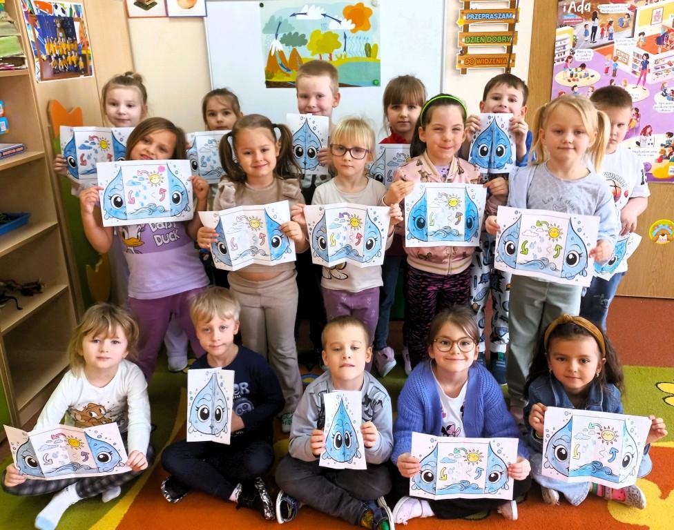 - dowiedziały się,skąd się bierze deszcz i gdzie znajdziemy krople wody,wykonywały eksperymenty:parowanie i skraplanie,dowiedziały się,jak woda krąży w przyrodzie i wykonały pracę plastyczną kredkami świecowymi i farbami,