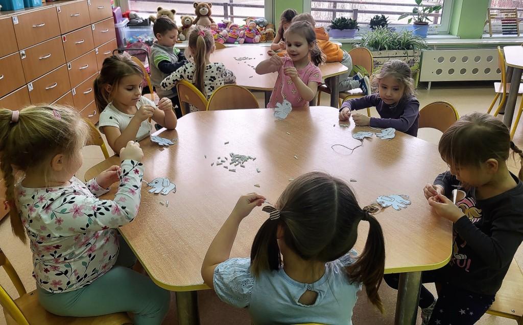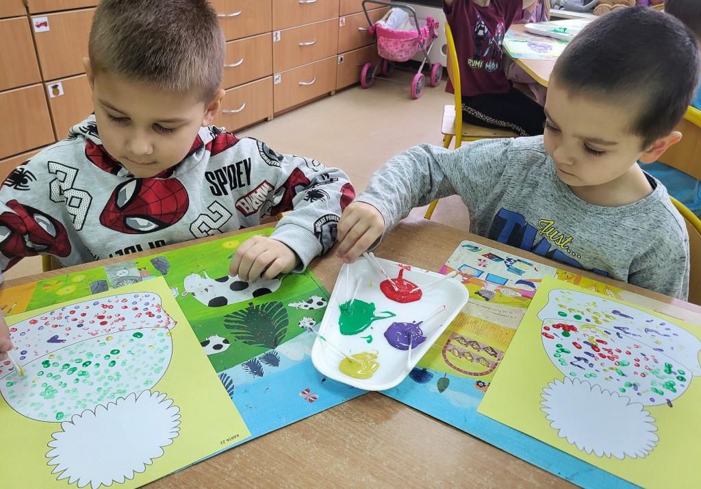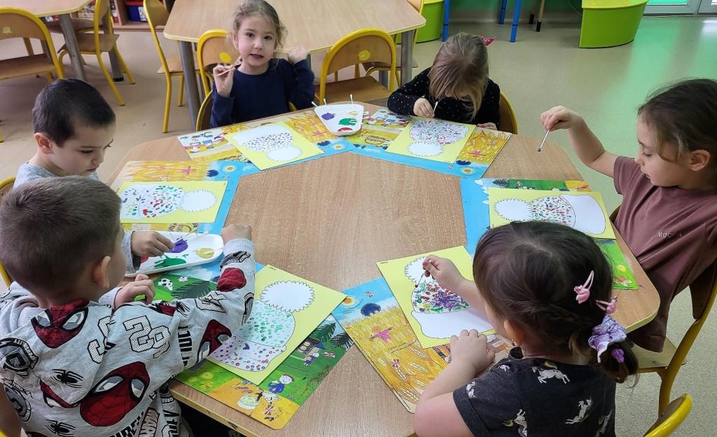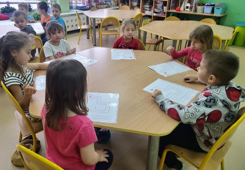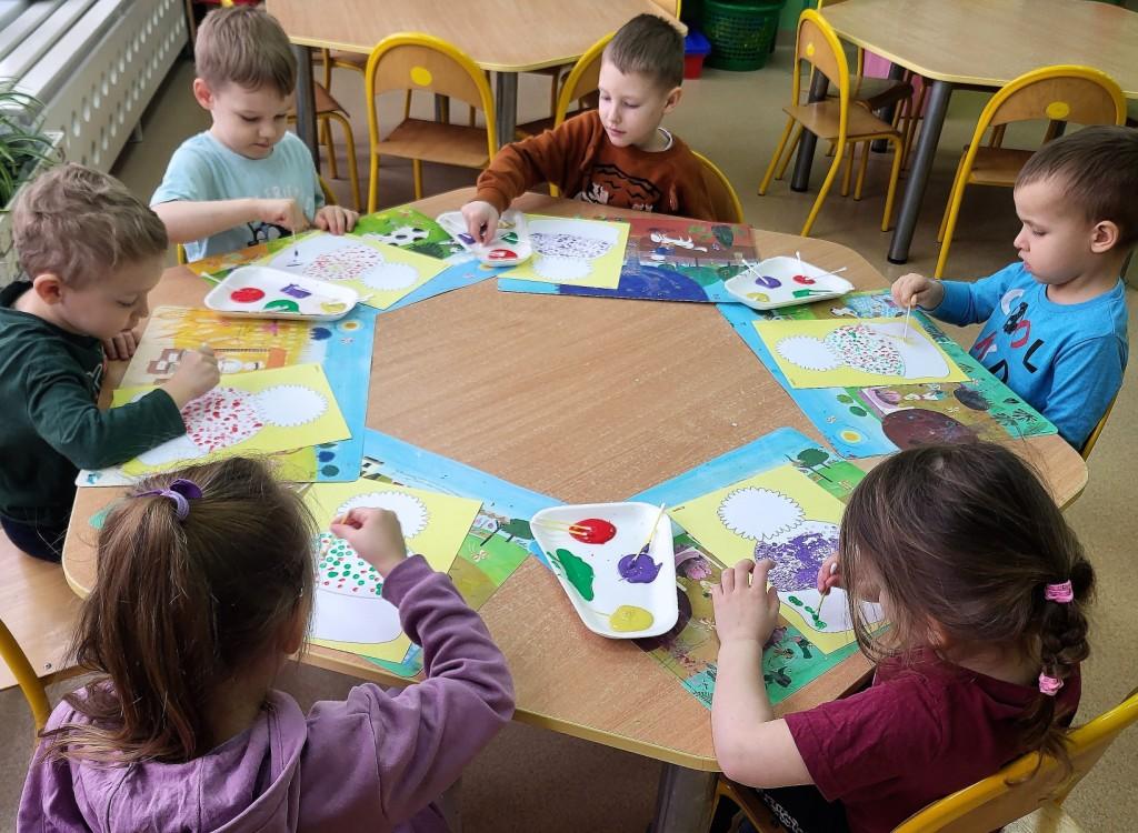 Dzieci z grupy Motylki realizują projekt edukacyjny-Małe rączki–wielkie możliwości,czyli sensoryczna droga do sprawności,który ma na celu rozwijanie sprawności manualnej dzieci poprzez radosne,zmysłowe działanie.Przedszkolaki nie tylko rozwijają motorykę małą,ale również uczą się samodzielności i budują wiarę w swoje możliwości.Kreatywne zabawy sensoryczne angażują dłonie,palce,zmysły i przede wszystkim dziecięcą wyobraźnię.Tym razem przedszkolaki nawlekały kawałki słomek na sznurek tworząc trąbę słonia,łowiły plastikowe nakrętki z miski napełnionej wodą za pomocą klamerek do bielizny,przelewały kolorową wodę z kubeczka do kubeczka za pomocą pipet,malowały farbą z użyciem patyczków higienicznych oraz prowadziły kroplę wody po wyznaczonym torze przy użyciu wykałaczki.