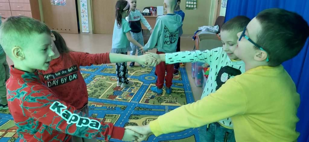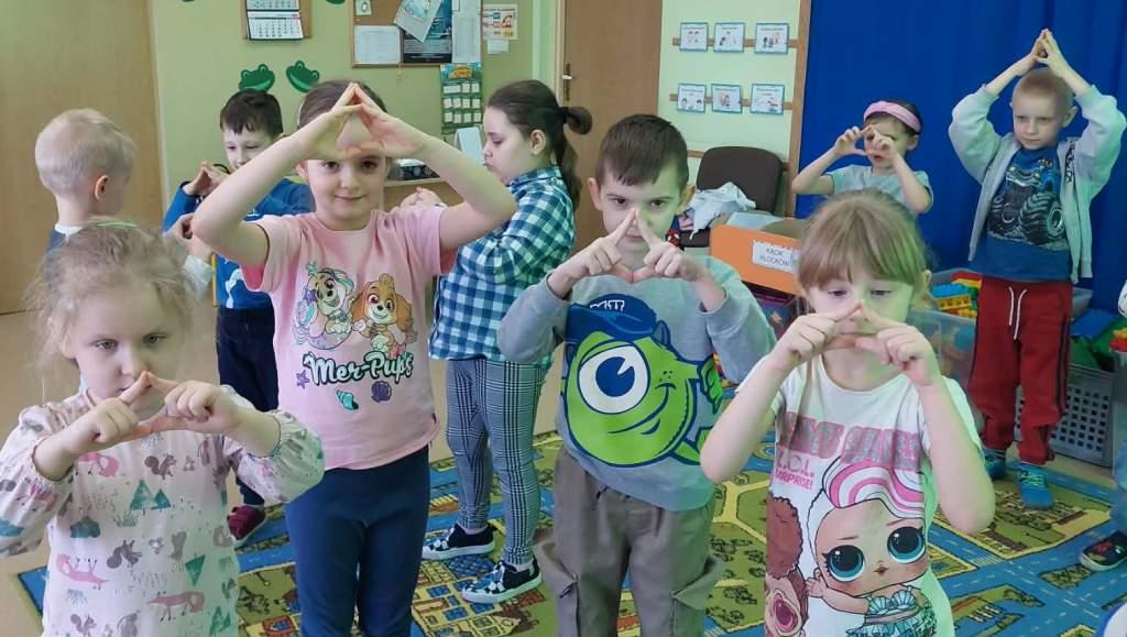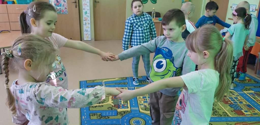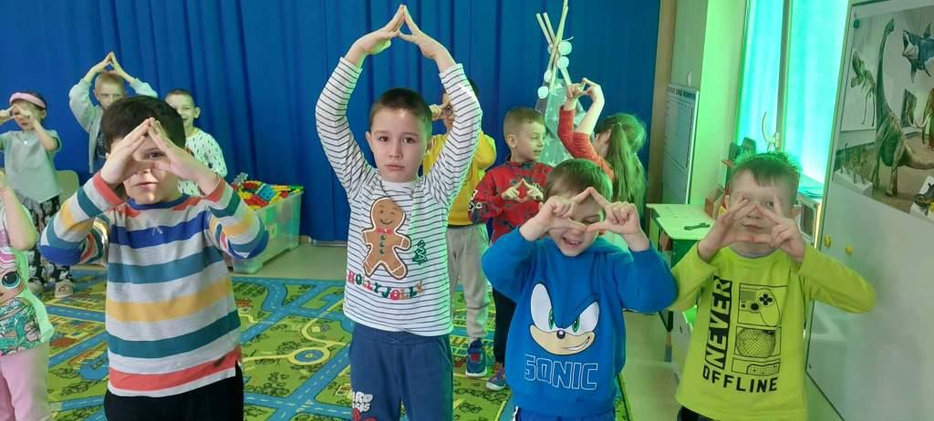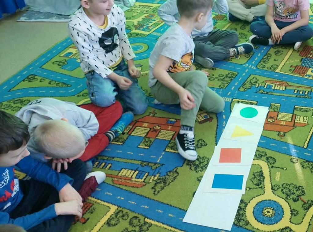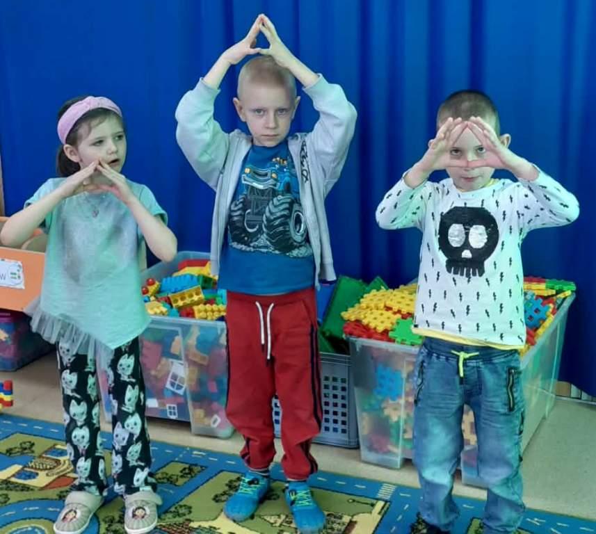 5 marca dzieci z grupy Żabki zrealizowały kolejny temat z projektu Ekologiczne zabawy matematyczne pt.Geometryczne skarby przyrody.Tego dnia dzieci wybrały się na spacer w okolicy przedszkola w poszukiwaniu kształtów w otoczeniu.Po powrocie dobierały znalezione kształty do odpowiednich figur.Następnie wzięły udział w zabawie muzyczno ruchowej, której zadaniem było na hasło stworzyć odpowiednie figury oraz zabawie dydaktycznej-co zniknęło?Na koniec wykonały pracę plastyczną pt.Geometryczny obrazek przyrody.