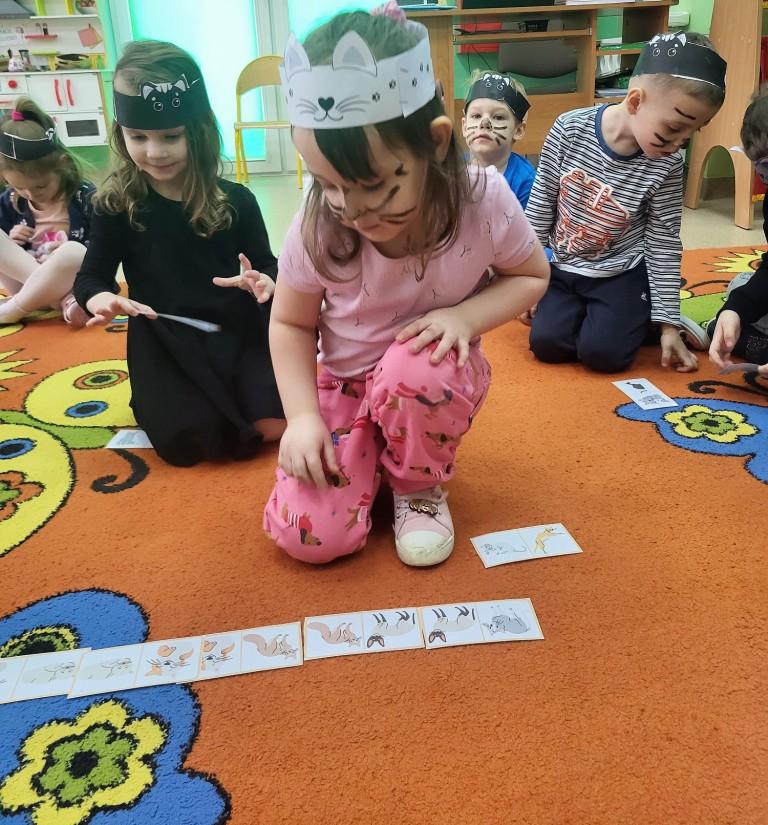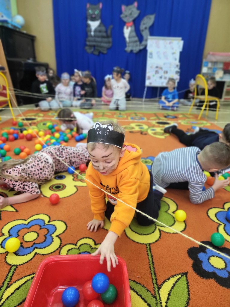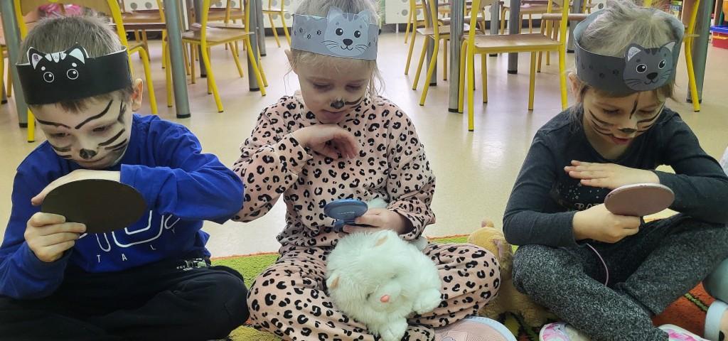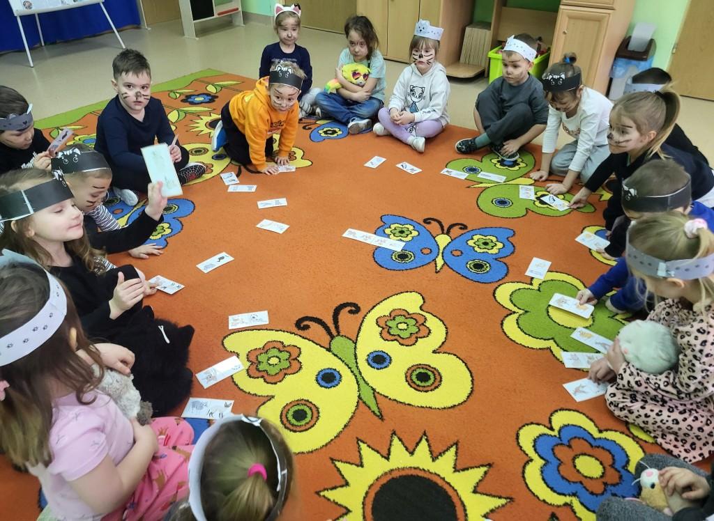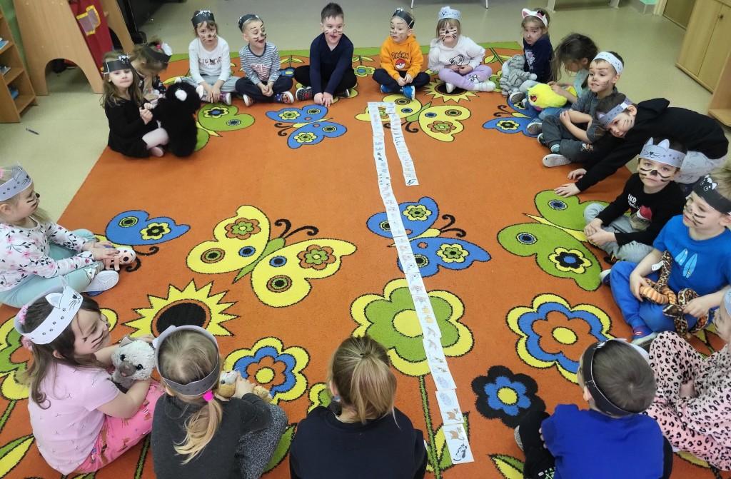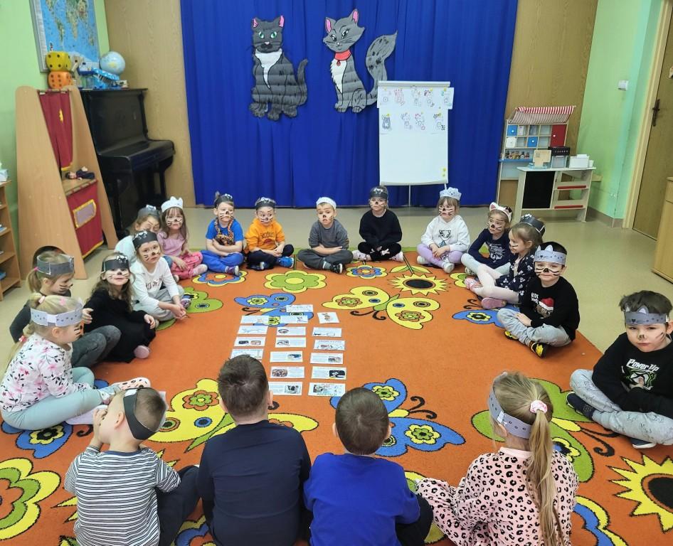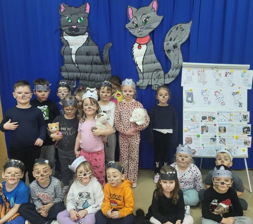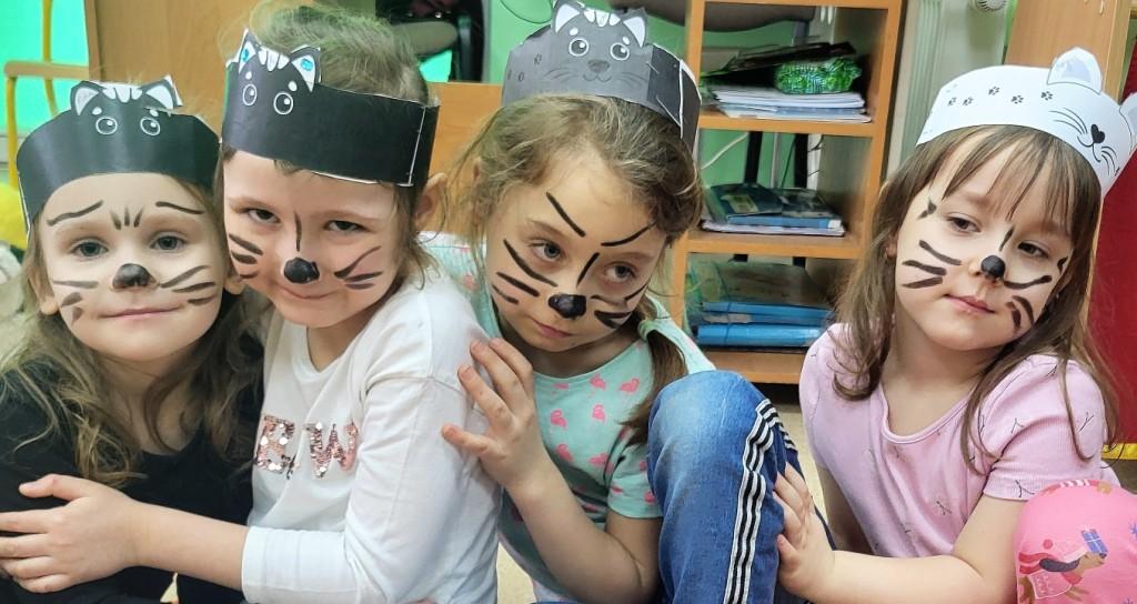W poniedziałek 17 lutego przedszkolaki z grupy Motylki obchodziły nietypowe święto Światowy Dzień Kota.Wszystkie dzieci upodobniły się do czworonożnych przyjaciół poprzez wymalowane na swoich twarzach piękne noski,wąsy i typowe dla kotków uszka.Dzieci oglądały książki o tych tajemniczych zwierzętach,zapoznały się z kocimi obyczajami oraz sposobem pielęgnacji i opieki jakiej wymagają.Były też wesołe kocie zabawy przy znanych piosenkach:Uciekaj myszko,My jesteśmy kotki dwa,Wlazł kotek na płotek,Zabawy z włóczką.Dzieci układały kocie domino,grały w Memory,rozwiązywały zagadki,aktywnie uczestniczyły w zabawie w formie opowieści ruchowej:miaucząc,robiąc koci grzbiet, mrucząc,drapiąc.Przedszkolaki wykonały również prace plastyczne z kotkiem w roli głównej.Celem obchodów tego dnia było poszerzenie wiedzy na temat kotów oraz zwrócenie uwagi ludzi na los porzuconych i bezdomnych zwierząt.