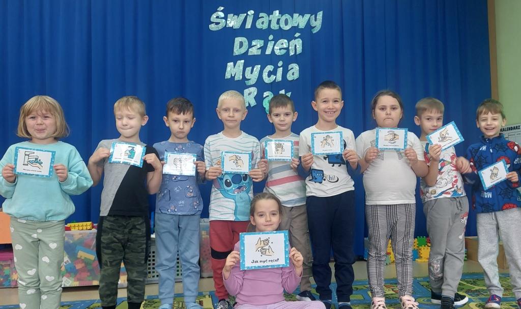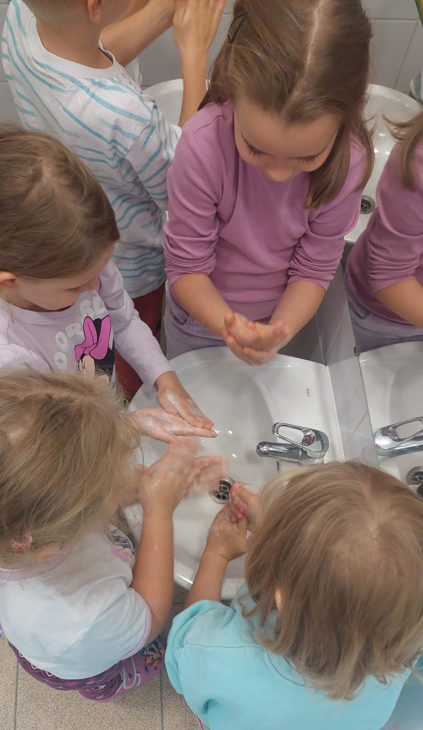 15 października obchodzony jest Światowy Dzień Mycia Rąk.Celem tego dnia jest uświadomienie dzieciom jak ważne znaczenie ma w ich życiu codzienne mycie rąk.W grupie Żabki odbyły się rozmowy na temat zarazków,bakterii i wirusów,które dostają się do naszego organizmu poprzez brudne ręce.Dzieci dowiedziały się,jakie znaczenie dla zdrowia ma czyste i dokładne mycie rąk oraz jakie choroby przynoszą.Omówiliśmy także schemat mycia rąk oraz zastosowaliśmy go w praktyce.Nie zabrakło też piosenek związanych z czynnościami samoobsługowymi i nawykami higienicznymi.Światowy Dzień Mycia Rąk dostarczył nam wielu wrażeń oraz pokazał,że pewne umiejętności i nawyki należy kształtować już od najmłodszych lat.