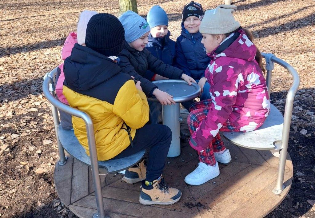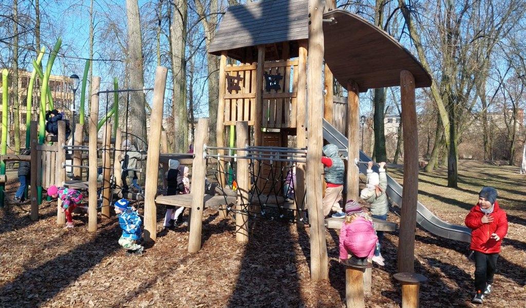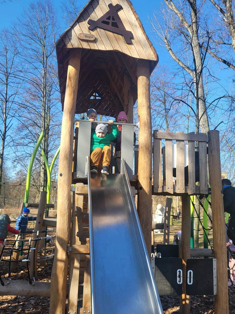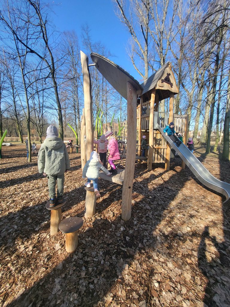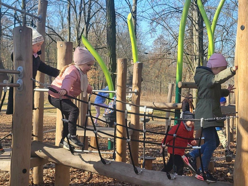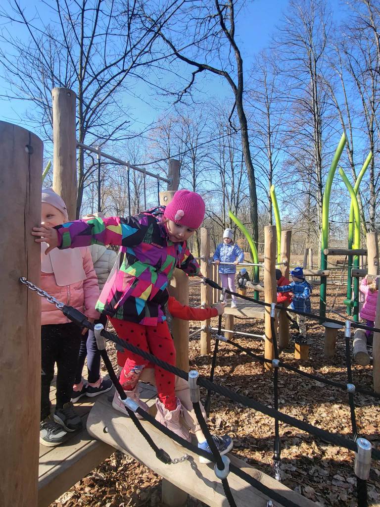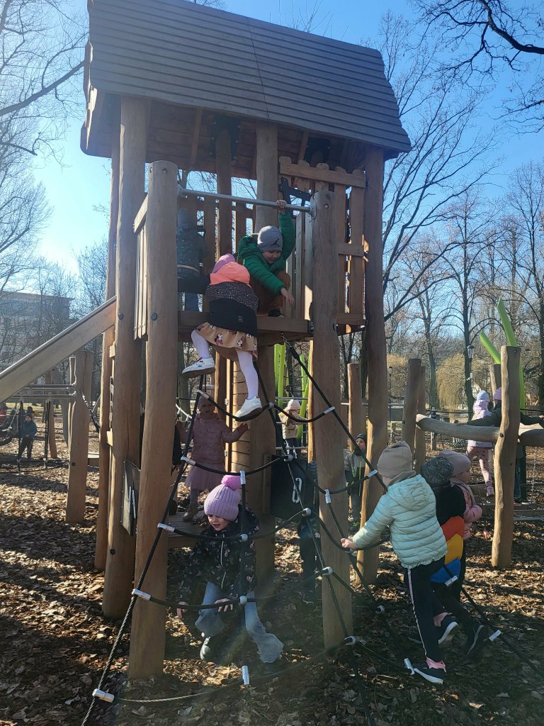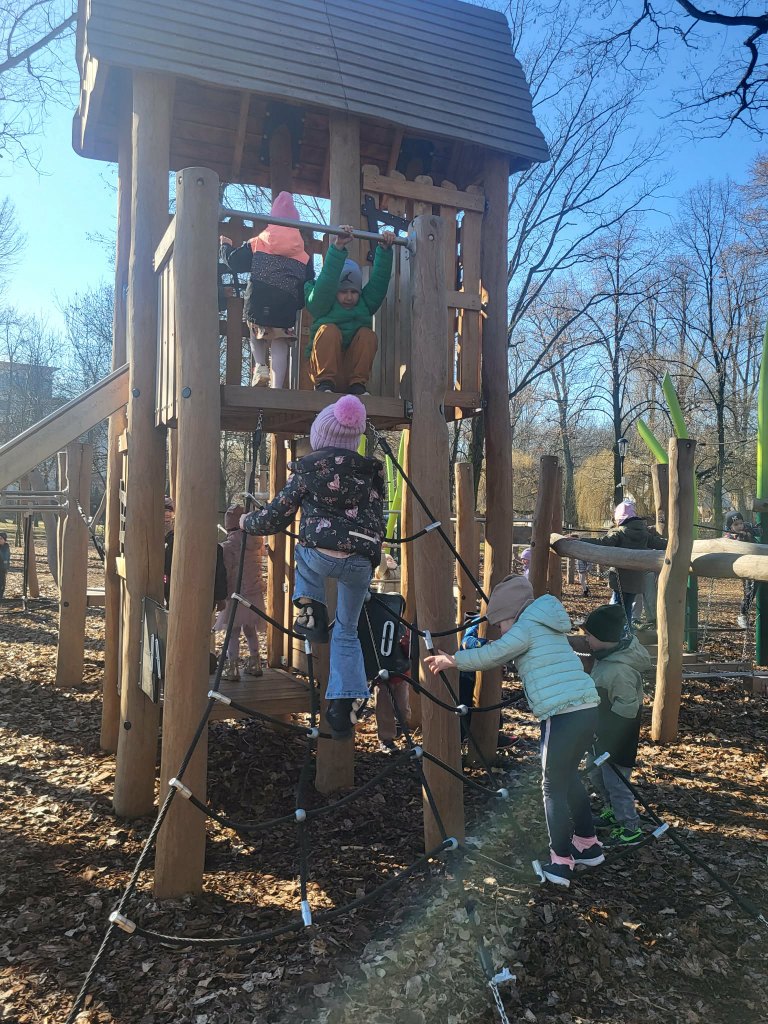 6 marca Żabki i Motylki wybrały się do Parku Solidarności w poszukiwaniu wiosny.Z uśmiechem na ustach obserwowały pierwsze pączki na drzewach.Spacer wśród drzew i krzewów umilał śpiew ptaków.Podczas wycieczki przedszkolaki zauważyły dzikie kaczki, które odpoczywały na trawie.Wycieczka okazała się być nie tylko relaksem na placu zabaw ale przede wszystkim była nauką,jak dbać i szanować przyrodę oraz cieszyć się z oznak budzącej się z zimowego snu przyrody.