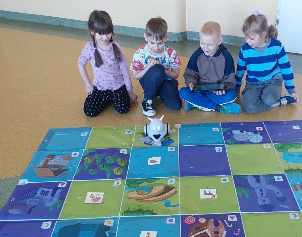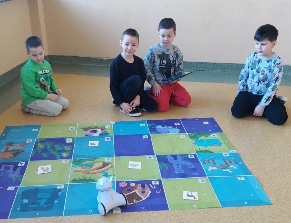 W dniu dzisiejszym grupa Żabki na zaproszenie p.Kasi ponownie uczestniczyła w lekcji pokazowej na temat:Poznajemy Photona-wprowadzenie robota edukacyjnego jako środek dydaktyczny.Tym razem dzieci wyruszyły z robotem do lasu,gdzie poznały leśne zwierzęta.Zadaniem dzieci było poprowadzenie robota do skarbów lasu omijając przeszkody.To była bardzo ciekawa lekcja,która nauczyła dzieci wydawania poleceń robotowi.Bardzo dziękujemy za zaproszenie.