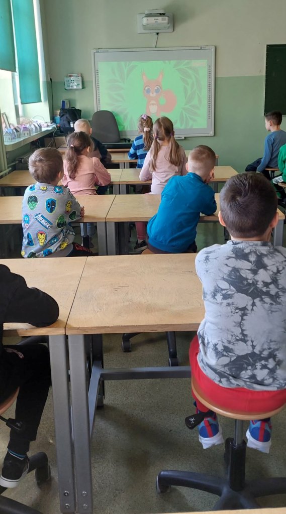Żabki na lekcji pokazowej z Photonem w SP 13